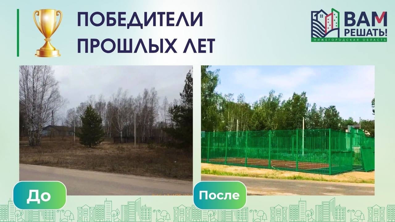 В 2024 году в деревне Кудрино городского округа Сокольский реализована инициатива по обустройству спортивной площадки с резиновым покрытием для футбола и баскетбола в рамках губернаторского проекта «ВАМ РЕШАТЬ!» по направлению «Спорт для всех».