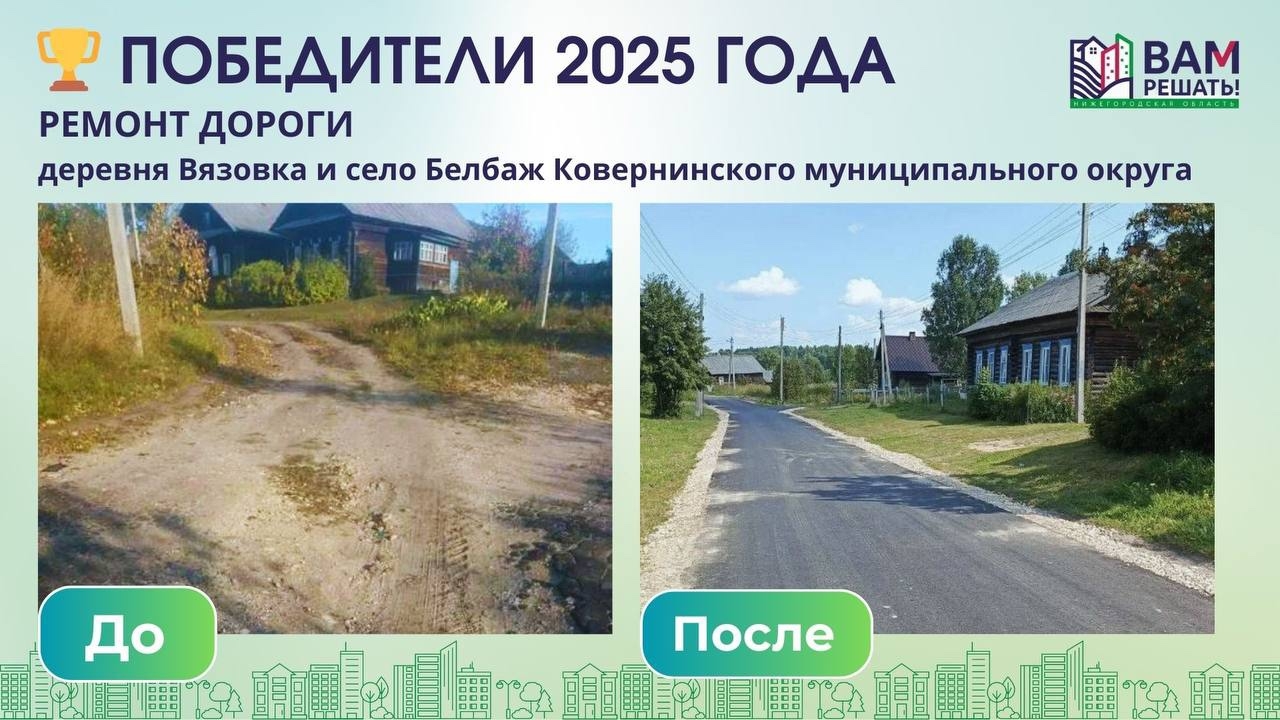 Реализована инициатива по ремонту участка автомобильной дороги между деревней Вязовка и селом Белбаж Ковернинского муниципального округа