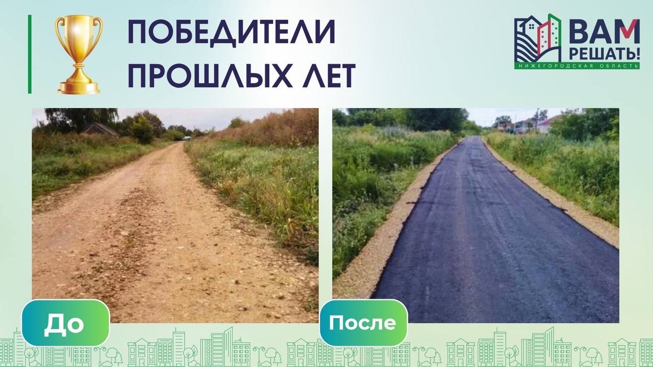 В 2024 году в селе Никитино по улице Гагарина отремонтирована дорога местного значения в рамках губернаторского проекта «ВАМ РЕШАТЬ!» по направлению «Наши дороги».